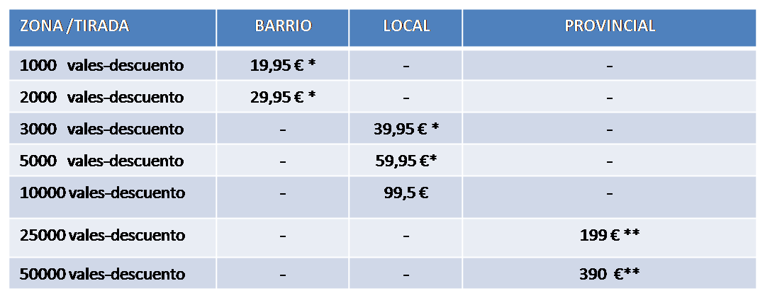 Tarifas 2010- precios válidos a nivel Nacional.Precio mensual.buzoneo incluido.